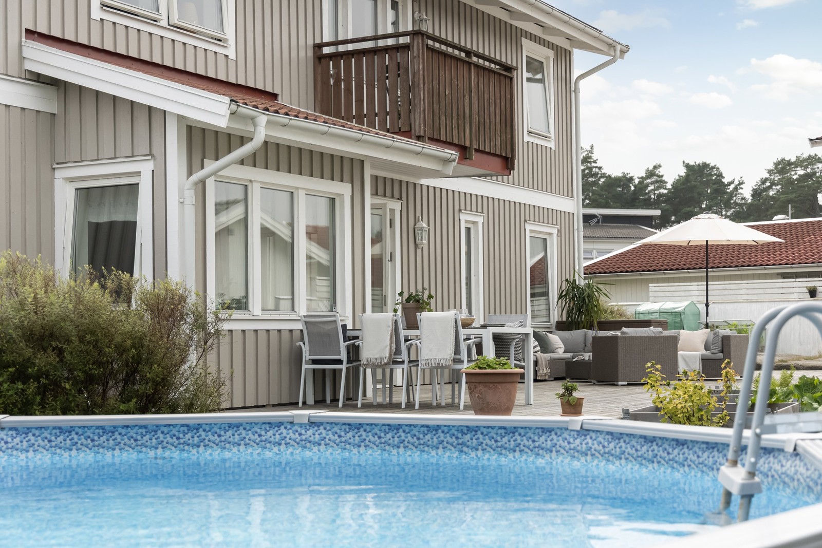 Bjurfors presenterar en stilren villa om 200kvm med pool och närhet till bad och båtliv.