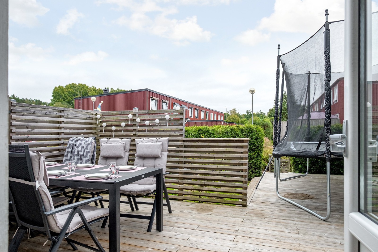 Här bor ni ett naturnära familjevänligt område med Hisingsparken precis bakom husknuten med 4H-gården och motionsstråk. För de små finns flera lekplatser, fotbollsplaner och förskolor/skolor i området. Tuve torg med mataffärer ligger ca 1,5 km bort. Bussen tar er med enkelhet in till centrala Göteborg med täta avgångar.