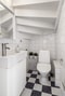 Via en svängd trappa ligger en väldisponerad sovrumsvåning med i nuläget fyra och ett fräscht badrum. Badrummet har tvättfat, duschavdelning, wc samt värme i klinkergolvet.