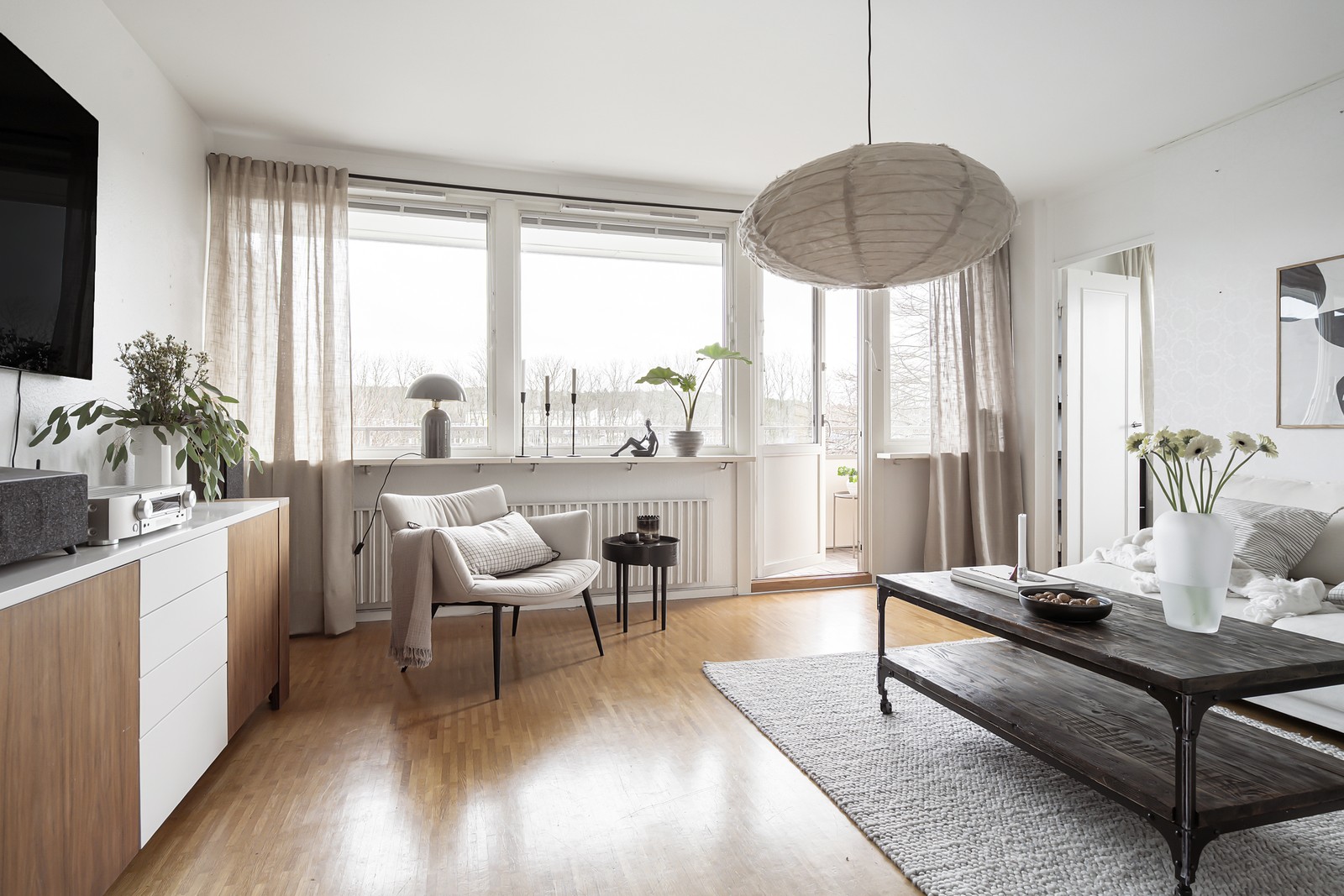 Från hallen fortsätter du in i det stora och ljusa vardagsrummet, där de generösa fönstren släpper in ett härligt ljus. Rummet erbjuder gott om plats för både en bekväm soffgrupp och en mysig läshörna. Från vardagsrummet når du bostadens andra sovrum som passar perfekt som barn-, tonårs- eller gästrum samt den andra delen av den rymliga balkongen. Här finns plats för loungemöbler och möjlighet att njuta av avkopplande sommarkvällar med rogivande utsikt.