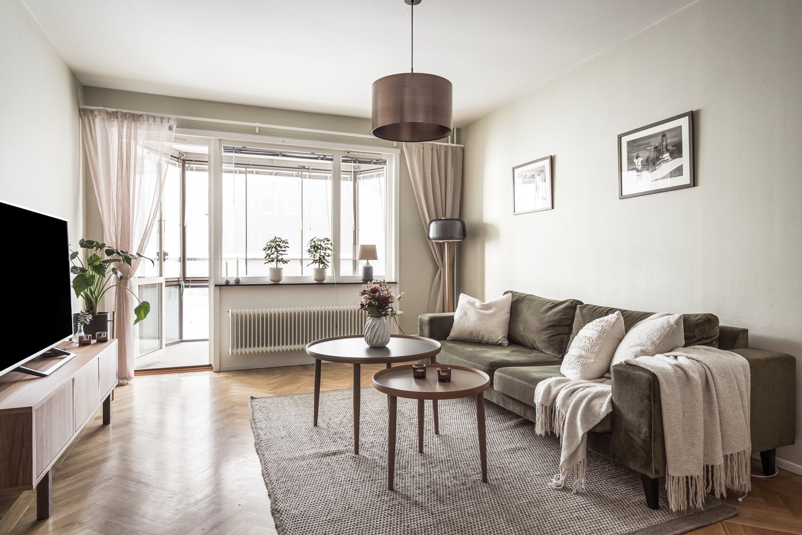 Bostaden har en välplanerad planlösning och en stor inglasad balkong som ger extra användbara kvadratmeter. Samtliga ytskikt är smakfullt valda i både färg och material och skapar en trivsam bas att inreda efter.
