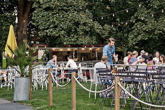 En tidig helgmorgon är den rofyllda tystnaden högst noterbar en milsvid skillnad mot kvällens sprudlande atmosfär, då fest och förväntan hänger i luften. Men utelivet iVasastaden är någonting helt annat än i cen-trum och på Avenyn. Här går man ut för att uppleva smaker, mötas och umgås. Kanske avnjuta en välmixad fördrink eller perfekt skummad cortado innan kvällens middag. Det är inte för inte som stadsdelens restauranger stoltserar med majoriteteten av stadens Michelinstjärnor; hela Vasastaden har en självklar internationell prägel, som inte känns påklistrad, utan helt naturlig.