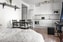 Allrummet ger plats för soffgrupp med tillhörande möblemang samt säng. Vitmålade väggar i kombination den stilrena ekparketten ger en neutral bas att inreda utefter. Tack vare de stora fönsterpartierna skapas ett vackert ljusspel genom hela lägenheten.