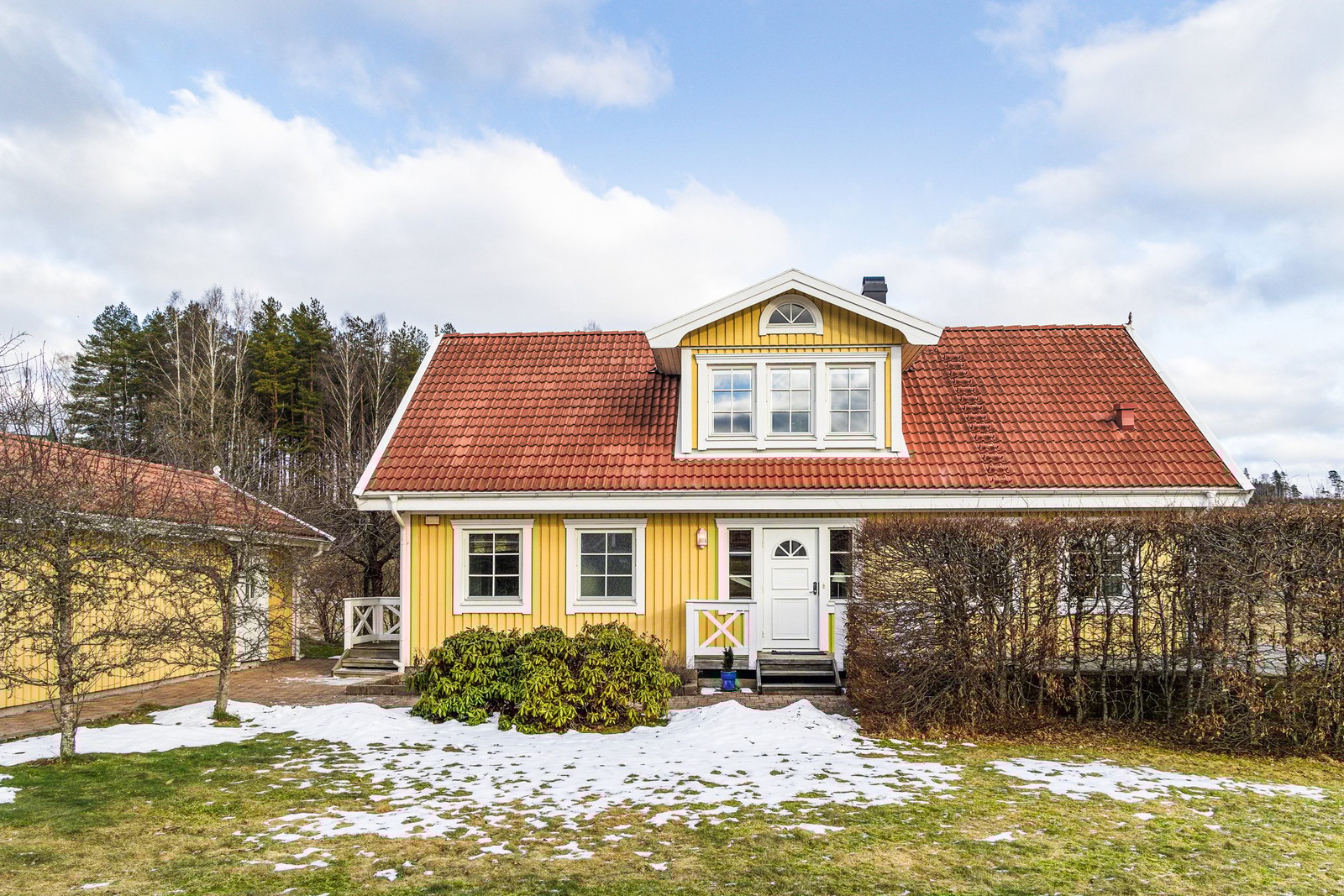 Rymlig villa med fyra sovrum, stort kök & braskamin. Bra läge nära skola, förskola, buss & natur.