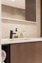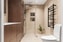 Den helrenoverade badrummet med tvättdel håller en exklusiv hotellkänsla med noggrant utvalda material och stilrena ytskikt. Badrummet är utrustat med dusch med inbyggda hyllor, toalett, generös kommod med gott om förvaring samt handukstork. Badrummet har även tvättmaskin och torktumlare.