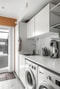 Övre plan erbjuder ett stort sovrum, ett allrum med kontorsdel samt ytterligare ett badrum – idealiskt för barnfamiljen eller som gästavdelning.
