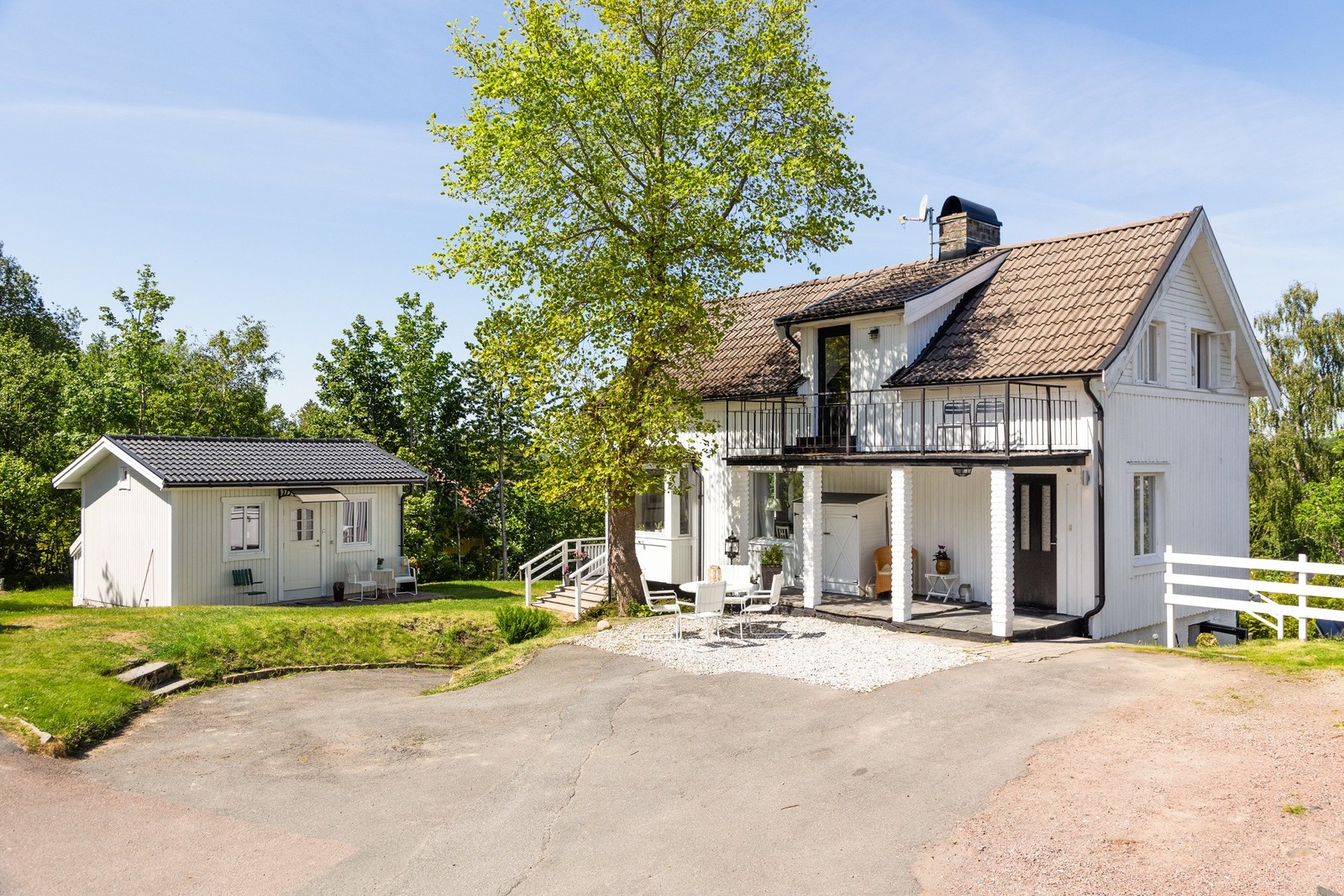 På ett lugnt och omsorgsfullt utvalt läge, med naturen som närmsta granne, återfinns denna charmiga och mycket välskötta villa från 1929. Huset är högt beläget med hänförande utsikt över Mölnlycke, Rådasjön och Slottsviken. Här bor du på första parkett till årstidernas skiftningar – särskilt hösten bjuder på ett färgsprakande skådespel, som att bo i en levande målning.