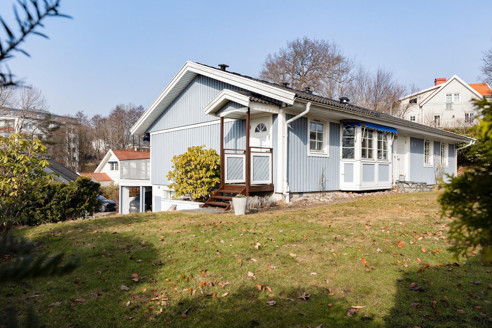 Härlig tomt som bjuder på en varierande trädgård och består av plan gräsmatta, berg i dagen samt vackra planteringar. Här finns utrymme för barnens spring och lek.