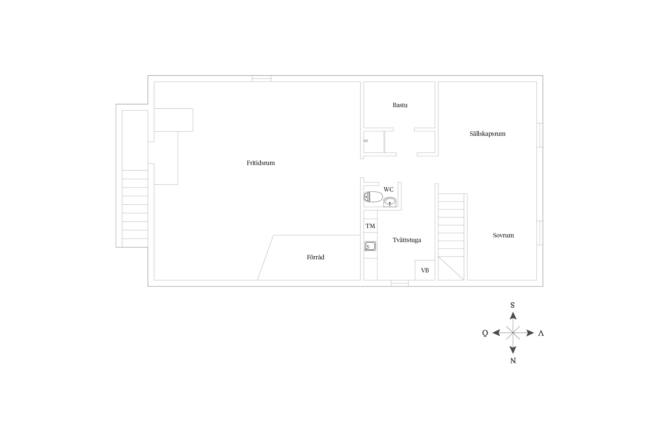 Nedre plan: En trappa ner nås ett sovrum med egen sällskapsdel. En rymlig tvättstuga, gäst-wc, bastu samt ett stort fritidsrum som också är ett komplett utrustat skyddsrum.