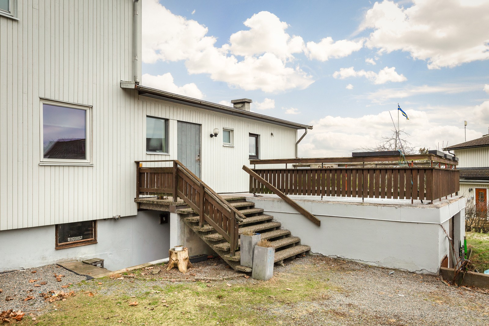 Den generösa trädgården är en fridfull oas, perfekt för trädgårdsprojekt, lek och avkoppling. Garaget är rymligt och erbjuder inte bara plats för fordon och förvaring utan även en härlig terrass ovanpå – en utmärkt plats för sommarens grillkvällar eller avkopplande stunder i solen.