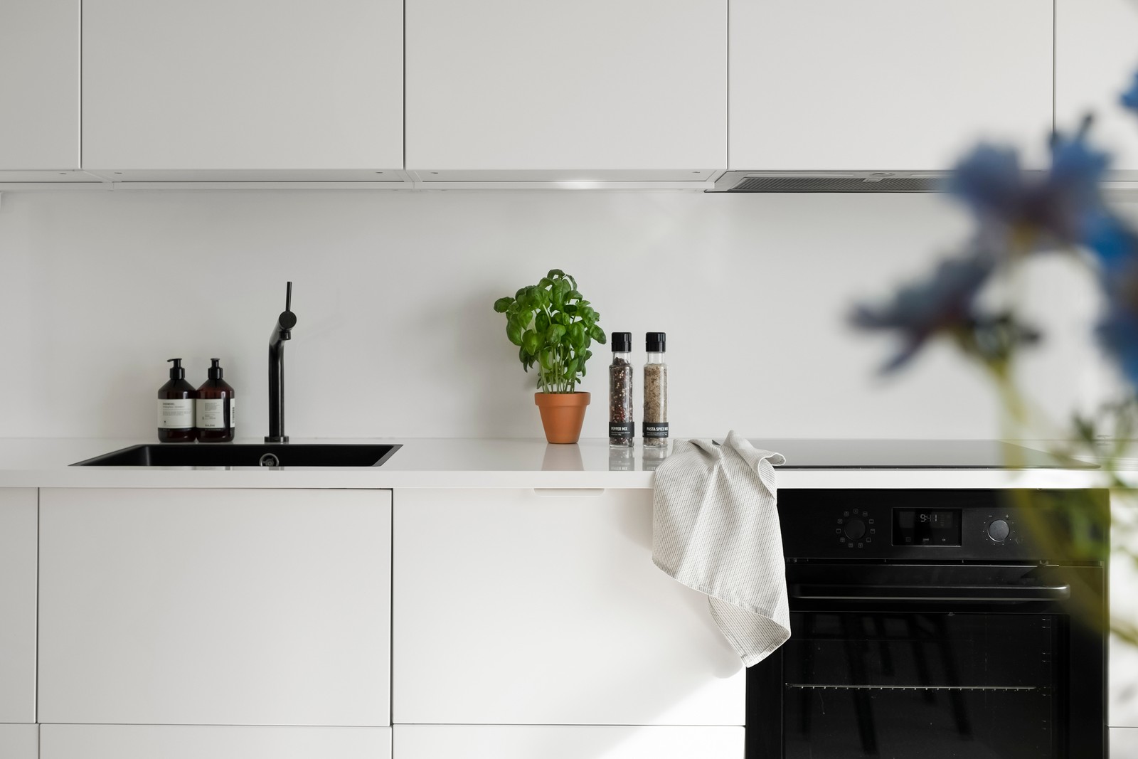Ett stort och hemtrevligt kök i modern design, totalrenoverat 2023. Här finns gott om utrymme för flera att laga mat tillsammans. Den stilrena maskinella utrustningen inkluderar spis, köksfläkt, ugn samt kyl och frys. Matplatsen är generöst tilltagen och rymmer enkelt ett större matbord.