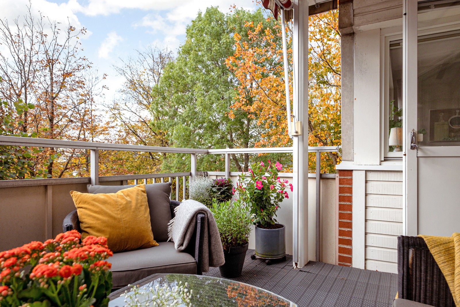 Härlig gaveltrea med grönskande utsikt, stor balkong i västerläge och garageplats