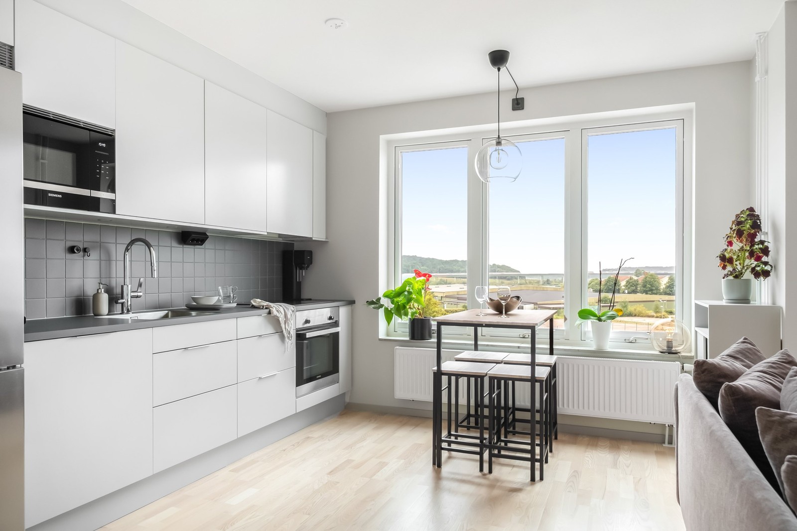 Från den härliga balkongen får du en fin utsikt mot Nordre älv, den perfekta platsen för morgonkaffet eller en stillsam kväll. Här bor du modernt, bekvämt och med en genomtänkt planlösning som gör varje kvadratmeter användbar. Ett hem som både känns trendigt och ombonat – redo för dig att sätta din personliga prägel på.