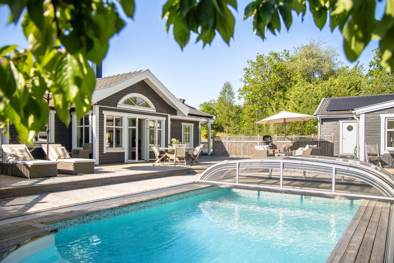 Central enplansvilla med extra allt – en modern oas med pool, bastu, garage och gästutrymme!