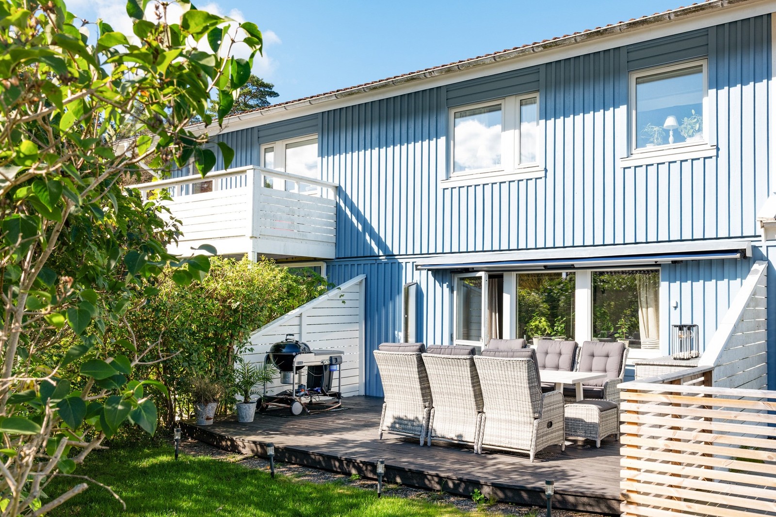 Från vardagsrummet nås den underbara uteplatsen och den lättskötta trädgården – en grön oas där du kan njuta av lata sommardagar, odlingar eller trevliga stunder med vänner och familj.