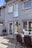 Modern trea med radhuskänsla, social planlösning, och en uteplats med ett insynsskyddat läge