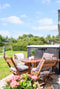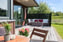 Från vardagsrummet når du den privata uteplatsen, omgärdad av grönska som skapar en känsla av trädgård och lugn – en perfekt plats att njuta av morgonkaffet eller sommarkvällarna, bara några minuter från havet.