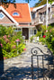 Det är kanske ingen överraskning att den charmiga villan i folkmun är känd som ”Pepparkakshuset”. På fastigheten fanns en gång ett gästgiveri (nuvarande källarförråd är från den gamla gästgiverigrunden) där nattgästerna anlände med häst och vagn på kvällen, för att nästa morgon ta ångbåten vidare ut till Marstrand. I dag parkerar man smidigt bilen i garaget nere vid vägen eller på uppfarten med huggen gatsten. Trappor i granit och en trädgårdsgång med skiffer från Tjuvkils skifferbruk försvinner upp mellan grönska och klippvägg. En stor gårdsplan i samma vackra sten breder ut sig i de två huselementens vinkel. Trädäcken omfamnar huset på tre sidor och två etage. Redan här på gårdsplanen öppnar sig utsikten över grönska och hamn. Ovanför villan klättrar trapporna vidare på berget. På den första avsatsen ligger det lilla glasorangeriet med terrass och allra högst upp finns ett stort soldäck som är rena utsiktsplatsen med skyhög panoramautsikt över hav och skärgård. Villan har byggts ut och totalrenoverats i omgångar med stark känsla för ursprungsmiljöns ljus, detaljer och elegans. Resultatet är en mycket stilsäker bostad med given transparens mot utemiljön tack vare flera utgångar till de stora terrassytorna. Här finns blonda plankgolv, detaljskurna listverk, synliga takbjälkar, kakelugn, gjutjärnsspis, spegeldörrar, småspröjsade glaspartier, halvmånekupor mm. Interiören präglas av ljus från flera håll, en till stor del öppen planlösning samt bitvis öppet upp i nock. I öppen planlösning med stor matsal ligger entréplanets stiltrogna kök. På detta plan finns även en glasveranda med fri panoramautsikt samt ett sovrum med eget wc och mindre klädkammare. Övre planet rymmer stora sällskapsytor, sobert badrum i sekelskiftesstil samt sovrum en suite med badrum och stor walk-in-closet. Det privata och insynsskyddade läget vid hamnen är svårslaget – efter knappt 25 minuter med båten eller 10 minuter i bilen når du Marstrand.