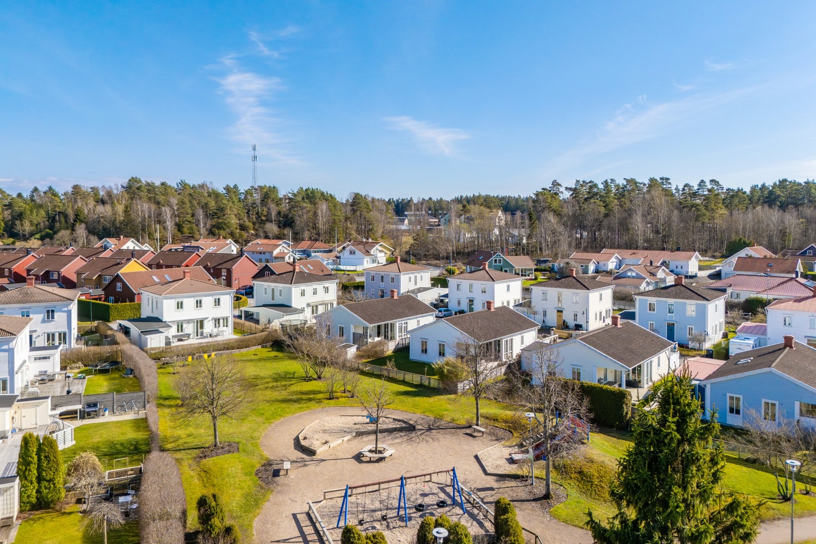 I samfälligheten ingår bland annat vatten och fjärrvärme centralen, fiber/tv, förvaltning av skötsel av grönområde och allmänningar samt vägavgift och snöröjning.