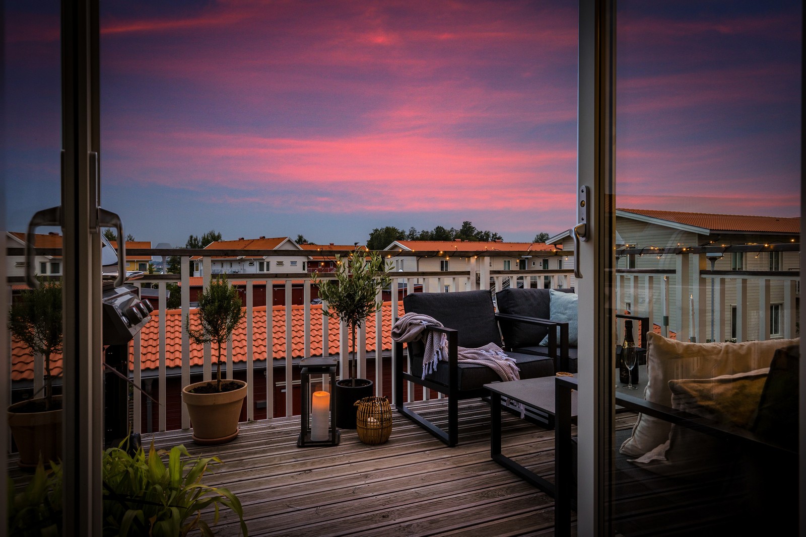 Vidare in i bostaden möts vi av köket/vardagsrummet. Den öppna planlösningen ger dig som boende trevliga och sociala ytor att avnjuta tillsammans med familj och vänner. Här ryms det med enkelhet en soffgrupp med soffbord och mediamöbel samt en matgrupp & vitrinskåp. Det stilrena köket från Vedum erbjuder bra med arbetsyta och bra förvaring. Vita snickerier & vitvaror bryter av snyggt mot bänkskivan i grått. Köket är utrustat med diskmaskin, induktionshäll, köksfläkt, ugn, mikrovågsugn samt kyl & frys i full höjd. Rummet bjuder på ordentligt ljusinsläpp från ett flertal fönster som skapar en trevlig helhet. Från vardagsrummet nås den solrika balkongen med ett fritt och högt läge. En fantastisk plats att vistas på dag som kväll. Storleken gör det enkelt att välja de utemöbler man vill ha - det finns gott om plats för loungegrupp/matgrupp, grill och odlingar.