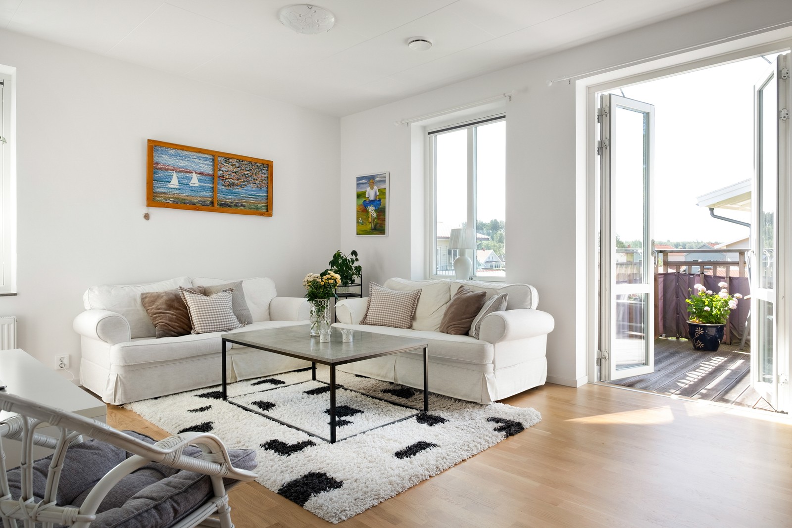 Modern tvåa med öppen planlösning och solig balkong