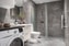 Bostaden erbjuder ett exklusivt badrum med golvvärme, handdukstork och infällda spotlights som ger en modern och harmonisk känsla. Materialvalen är noggrant utvalda för att skapa både komfort och elegans i vardagen.
