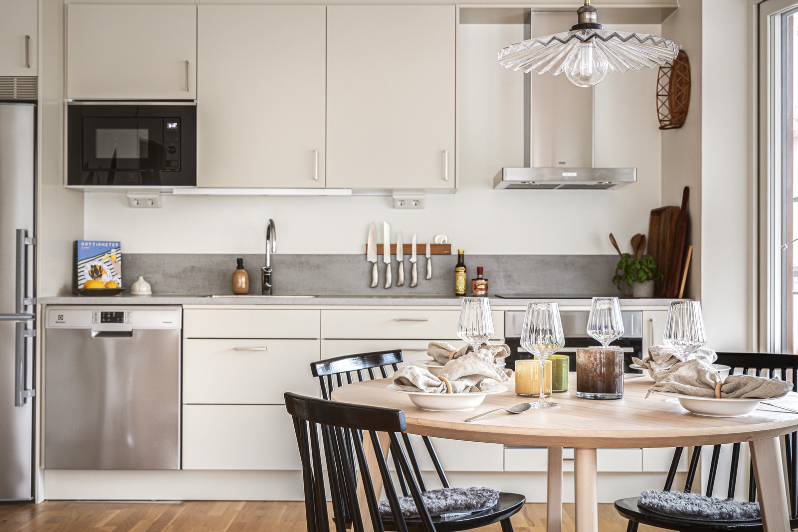 Det stora och rymliga vardagsrummet ger plats för både soffgrupp och ett större matbord, vilket gör det lätt att ta emot gäster och skapa en inbjudande atmosfär. Den öppna planlösningen skapar en naturlig flyt mellan rummen och gör lägenheten perfekt för en avslappnad livsstil.