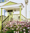 Mellan rabatterna slingrar sig en vacker grusgång med stenplattor.