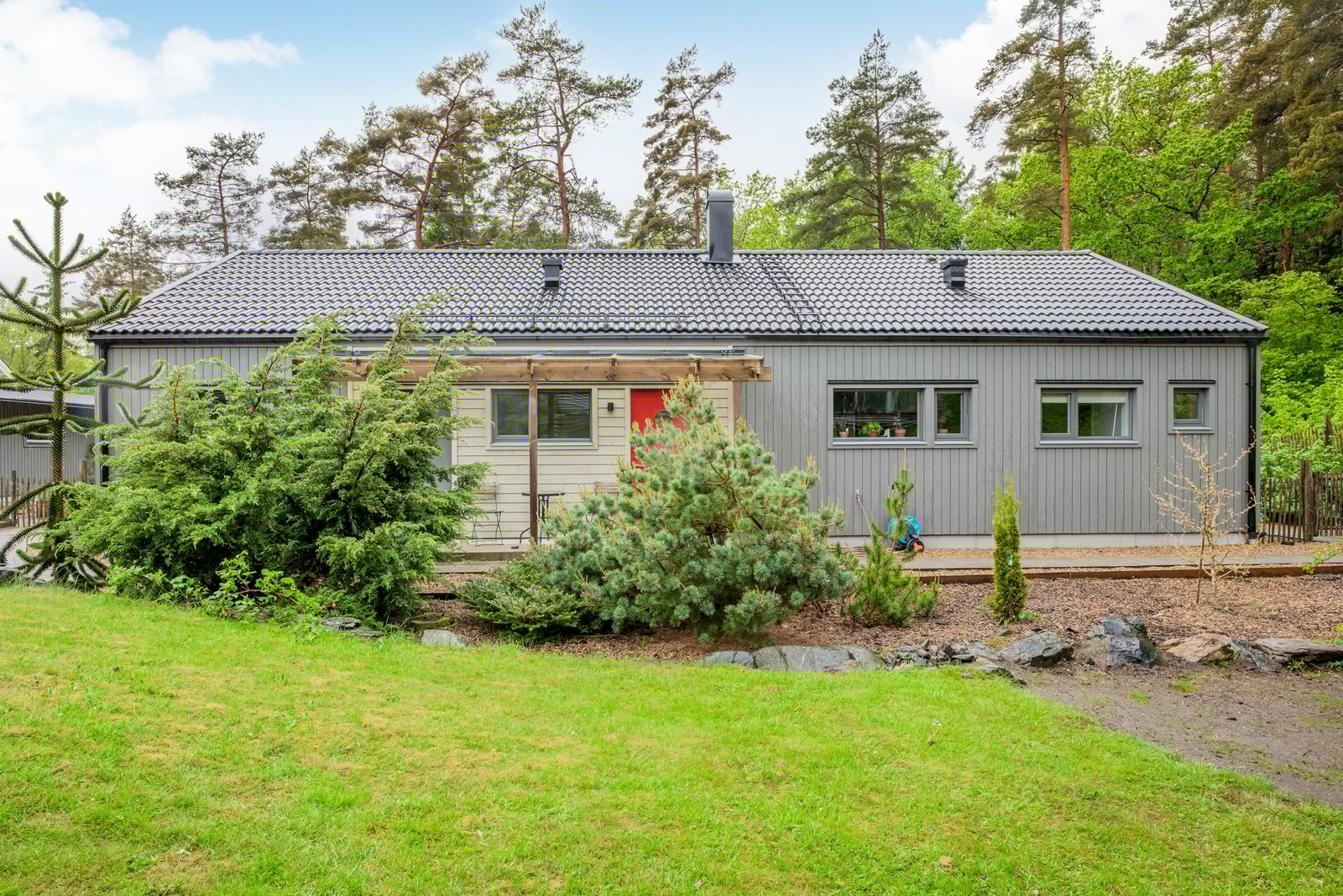 Längst upp och längst in på vägen ligger det här mycket fina och välbyggda hus i ett plan från 2016.