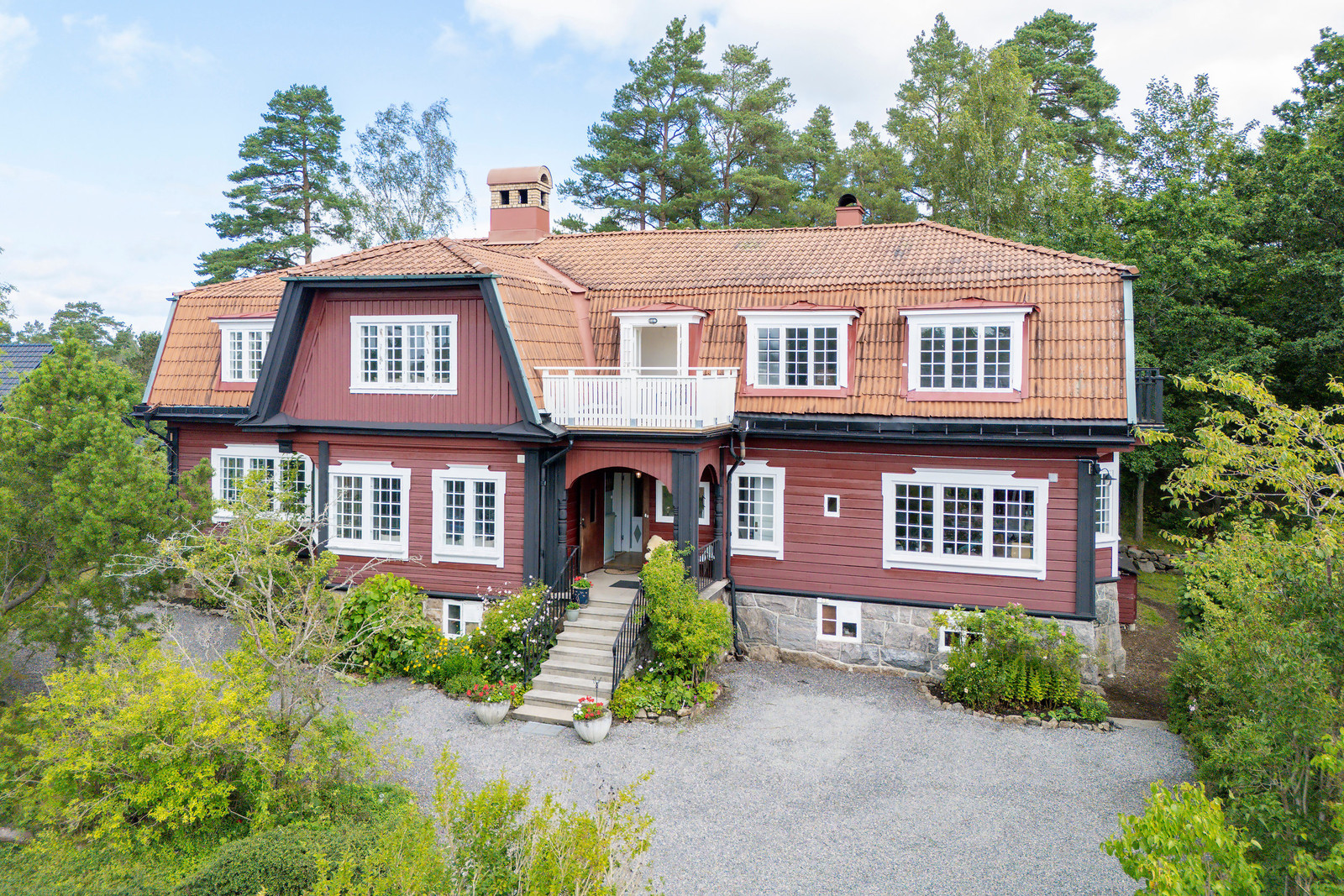 Inklusive den separata lägenheten har villan upp till sju sovrum, tre sobra badrum, två gäst-wc, flera sällskapsytor, matsal, två exklusivt utrustade kök, tvättstuga, kallskafferi, inre hallar, balkonger, indragen veranda mm. Lägenheten öppnar för generationsboende, uthyrning eller eget företagande vilket ger god boendeekonomi. Den skyddade tomten om 1600 kvm är mycket vacker och välskött med stora gräsytor, köksträdgård, fruktträd, trädgårdsdamm samt gamla lövträd.