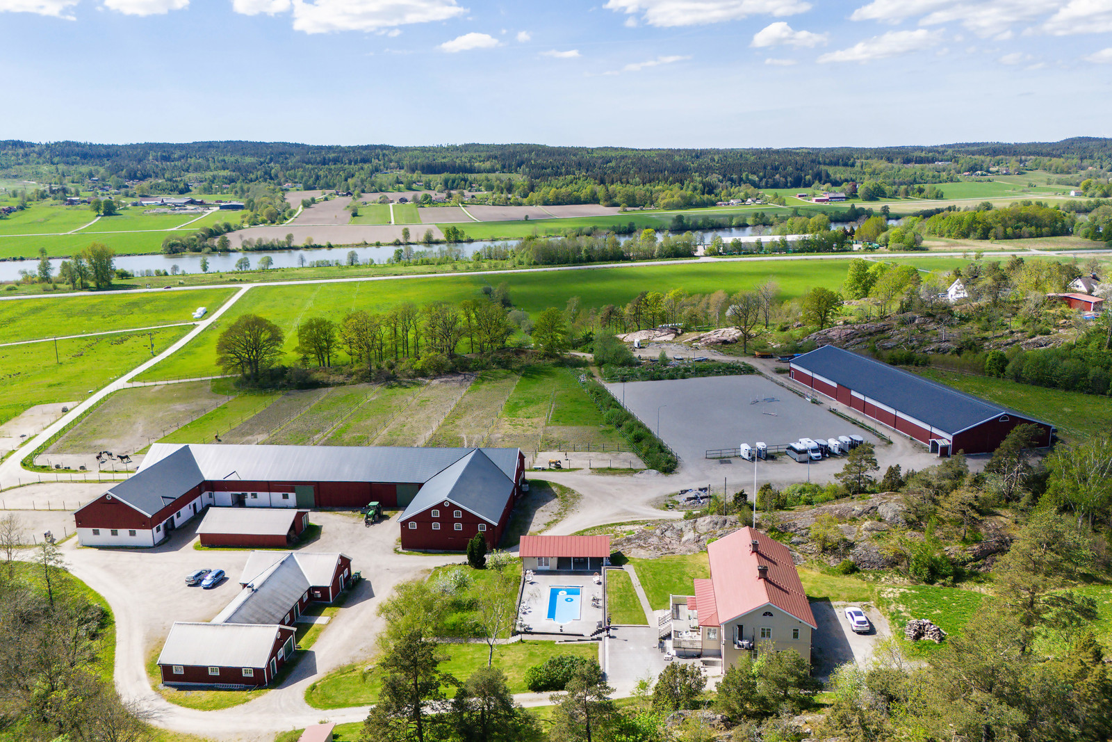 Hästgård om 32 ha med exklusivt renoverad mangårdsbyggnad, pool, 2 stall, 27 boxar och ridhus