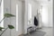 Entrén välkomnar med en ljus och rymlig hall med gott om plats för avhängning. Härifrån öppnar sig hemmets hjärta – köket och vardagsrummet i öppen planlösning. Köket erbjuder goda arbetsytor och rikligt med förvaring, medan vardagsrummet imponerar med sin takhöjd och utsikten genom de stora fönstren. Genomgående ekgolv binder samman ytorna och förstärker känslan av harmoni.