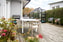 Huset erbjuder generösa altaner som går runt på alla tre sidor vilket möjliggör att följa solen från morgon till kväll under vår- och sommartid. Den privata baksidan är en trivsam oas med växthus för odlingsintresserade och gott om plats för utemöbler i ett lugnt och skyddat läge tack vare ligusterhäcken mot grannen – perfekt för långa sommarkvällar. På framsidan blommar syrenhäcken under sommartid.