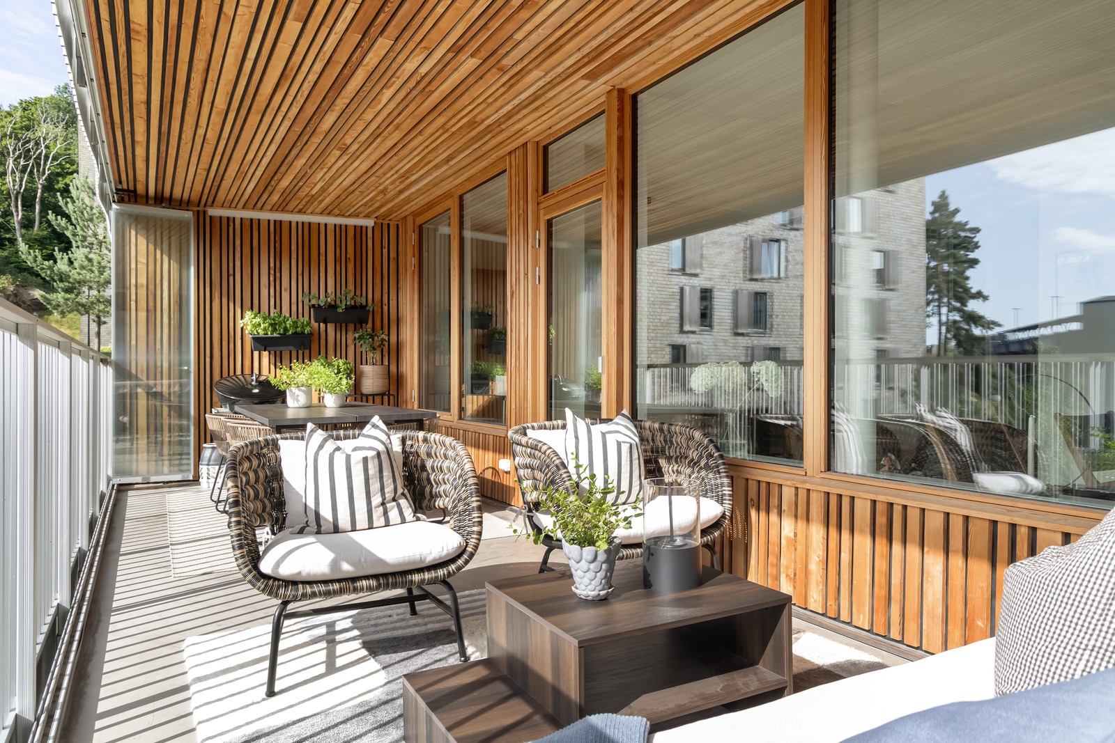 Hörntvåa med stor inglasad terrass i Krokslätt