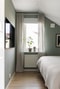 I anslutning till köket ligger bostadens rofyllda sovrum med plats för en större säng.