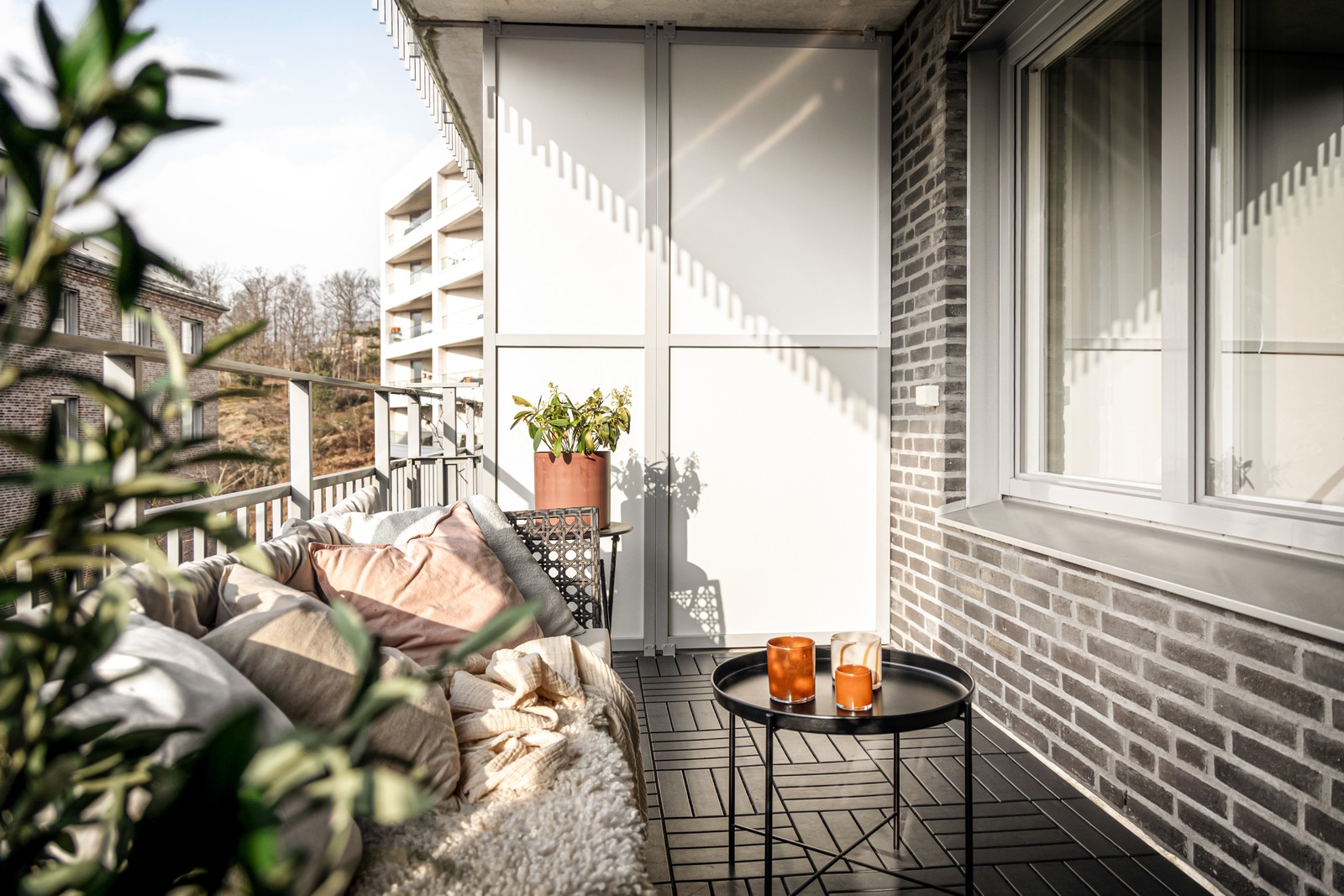 Lägenheten erbjuder välplanerade ytor med genomgående hög standard och moderna materialval. Ett generöst fönsterparti skapar ett fint ljusinsläpp som samspelar med parkettgolven och den öppna, sociala planlösningen. Det stilrena köket i vitt har modern design, goda arbetsytor och är utrustat med integrerad diskmaskin samt kvalitativa vitvaror. Från rummet nås den rymliga balkongen i sydvästläge, en härlig plats att njuta av solen från dagen och vidare in på eftermiddagen och kvällen.