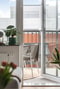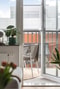 Balkong med morgonsol samt möjlighet att möblera med cafébord vid entrén på loftgången.