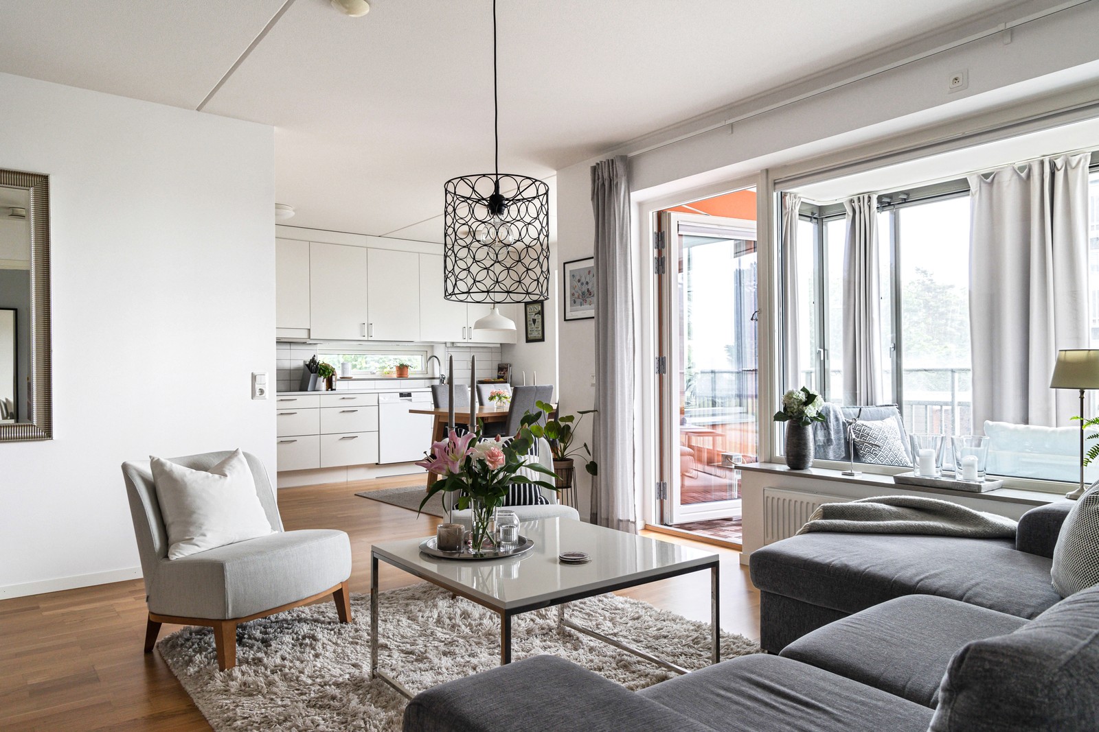 Välplanerad fyra med två balkonger och utsikt över Stensjön