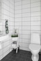 Här finns två badrum – ett större med dusch, tvättmaskin och torktumlare samt ett mindre med wc och handfat. Hallen har plats för ytterkläder och skor.