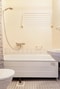 Om denna lägenhet köps separat utgör den en 2a på 50kvm, med sovrum, kök och ett stort vardagsrum. Vardagsrummet har en balkong i västläge med utsikt mot föreningens gräsmatta och uteplatser. Badrummet har idag badkar, men kan byggas om för dusch. Avgift: 2100 kr/mån (där det tillkommer 379 kr/mån för TV+bredband).