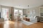 Direkt till höger når du köket som samspelar fint med vardagsrummet tack vare den öppna planlösningen. Köket är stilrent vitt med beslag i mässing och vitt kakel ovanför en mörkare bänkskiva, här finns gott om plats för både effektiv matlagning och trevlig samvaro kring köksbordet. Generösa arbetsytor och plats för mycket förvaring bakom skåpsluckor. Maskinellt utrustat med kyl/frys, spis med induktionshäll och varmluftsugn, fläkt och diskmaskin – allt i snyggt rostfritt utförande. Här finns även ett extra insatt skåp till skafferi eller annan förvaring. Matplatsen blir trevligt placerad framför fönstret.