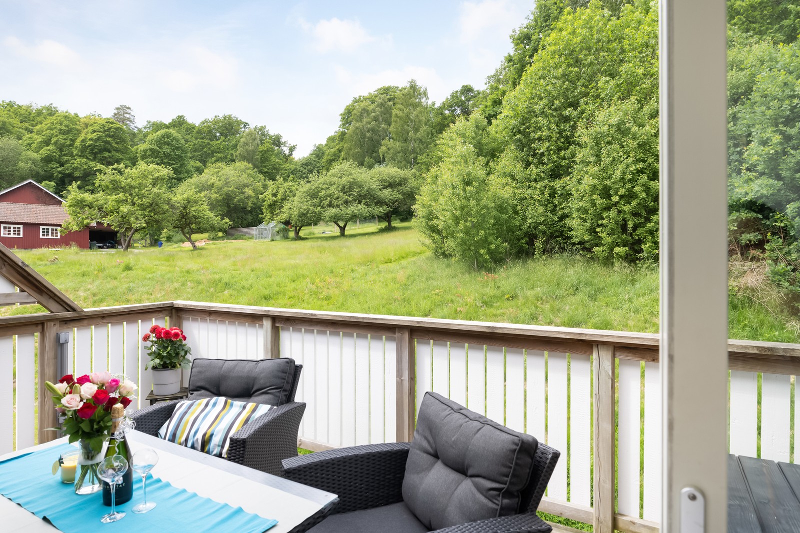 Välplanerad och ljus lägenhet med stor balkong i soligt och rofyllt läge, vy mot grönskande natur