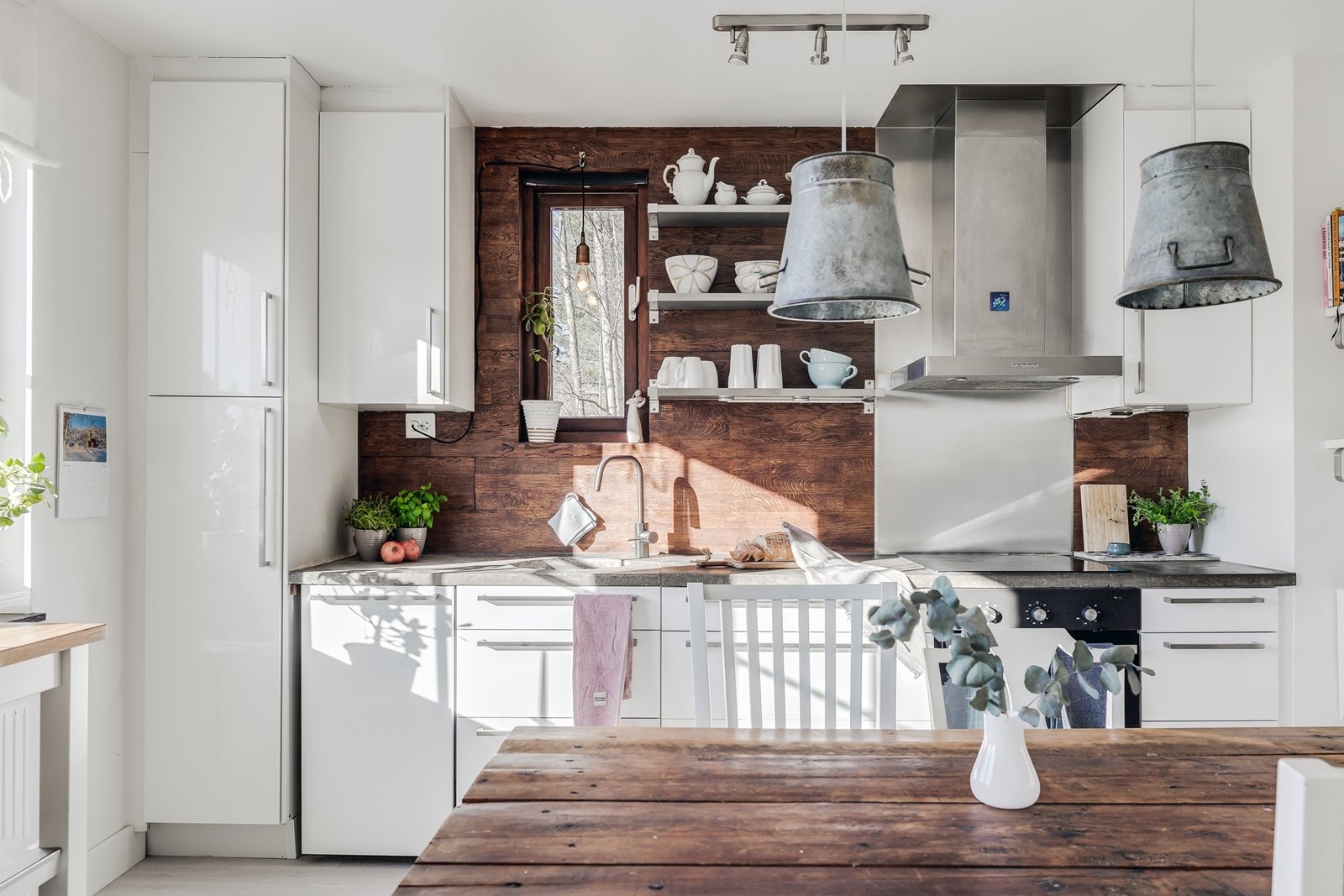 Kök: Fullutrustat kök från 2010. Vitvaror från 2010 och 2013/spishäll bytt 2025. Praktiska beredningsytor på snygg platsgjuten betongskiva. Matplats invid fönster samt ytterligare ljusinsläpp från fint litet fönster vid diskho.