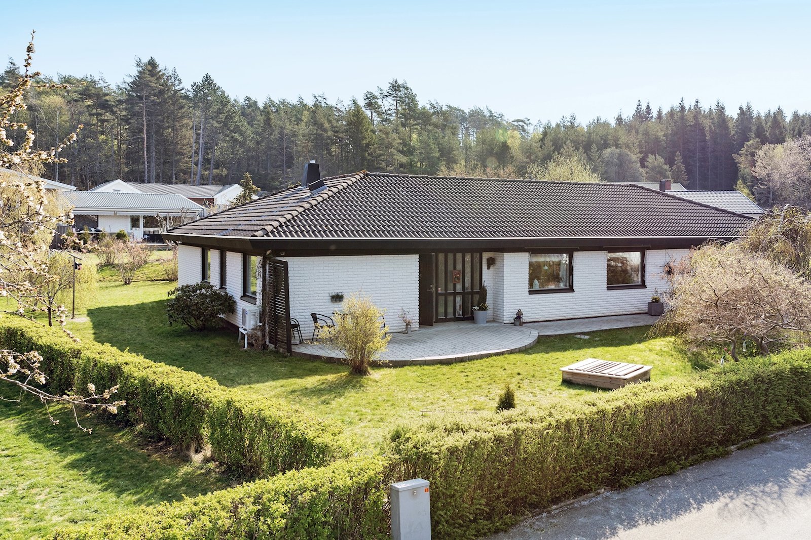 Trevligt enplanshus, i barnvänligt område intill skog och mark, stor och solig tomt i bra läge