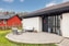 Uterum med access från allrum, vidbyggt garage med access från tvättstuga, gäststuga/trädgårdsbod fristående i trädgården.