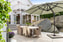 Smakfullt hus med underbara uteplatser och härligt gästhus. Vacker utsikt över takåsar och hav.