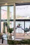 Vardagsrummet är ljust och luftigt med generösa fönsterpartier. Här finns även access till lägenhetens inglasade balkong som badar i både sol och vacker utsikt.