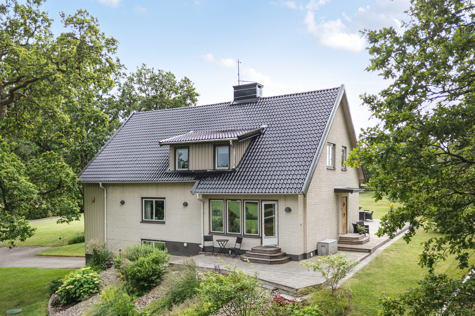 Naturnära idyll i Länghem. 226 kvm med uterum och bastu, på en grönskande tomt om 4 336 kvm där lugn och harmoni möter vardagens bekvämlighet.