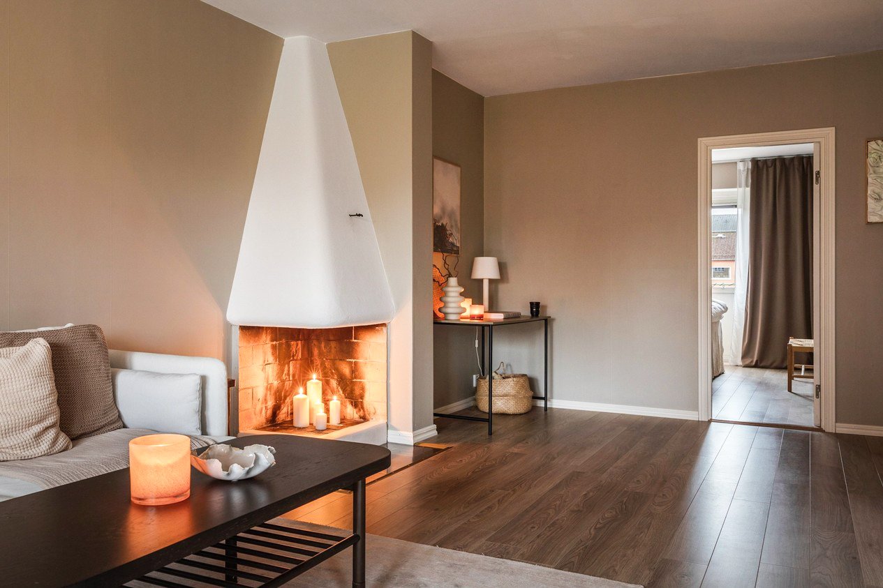 Fin möjlighet till en mycket tilltalande fyra som är välrenoverad i ett attraktivt utförande. Genomgående nya ytskikt i en varm och luftig interiör där fint genomgångsljus samsas med vacker eldstad (ej i bruk) och rum i fil. Härliga rumsvolymer med tre möjliga sovrum, gott om förvaring och inte minst två balkonger för att fånga såväl morgon- som kvällssol. Rymligt och renoverat kök, komplett badrum med tvättmaskin och separat extra toalett.