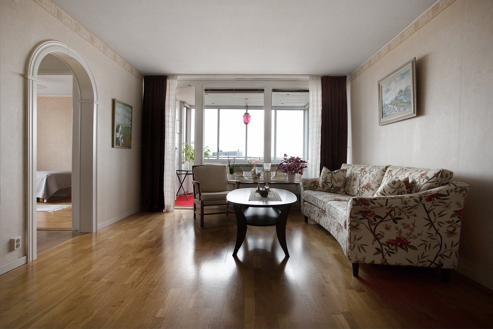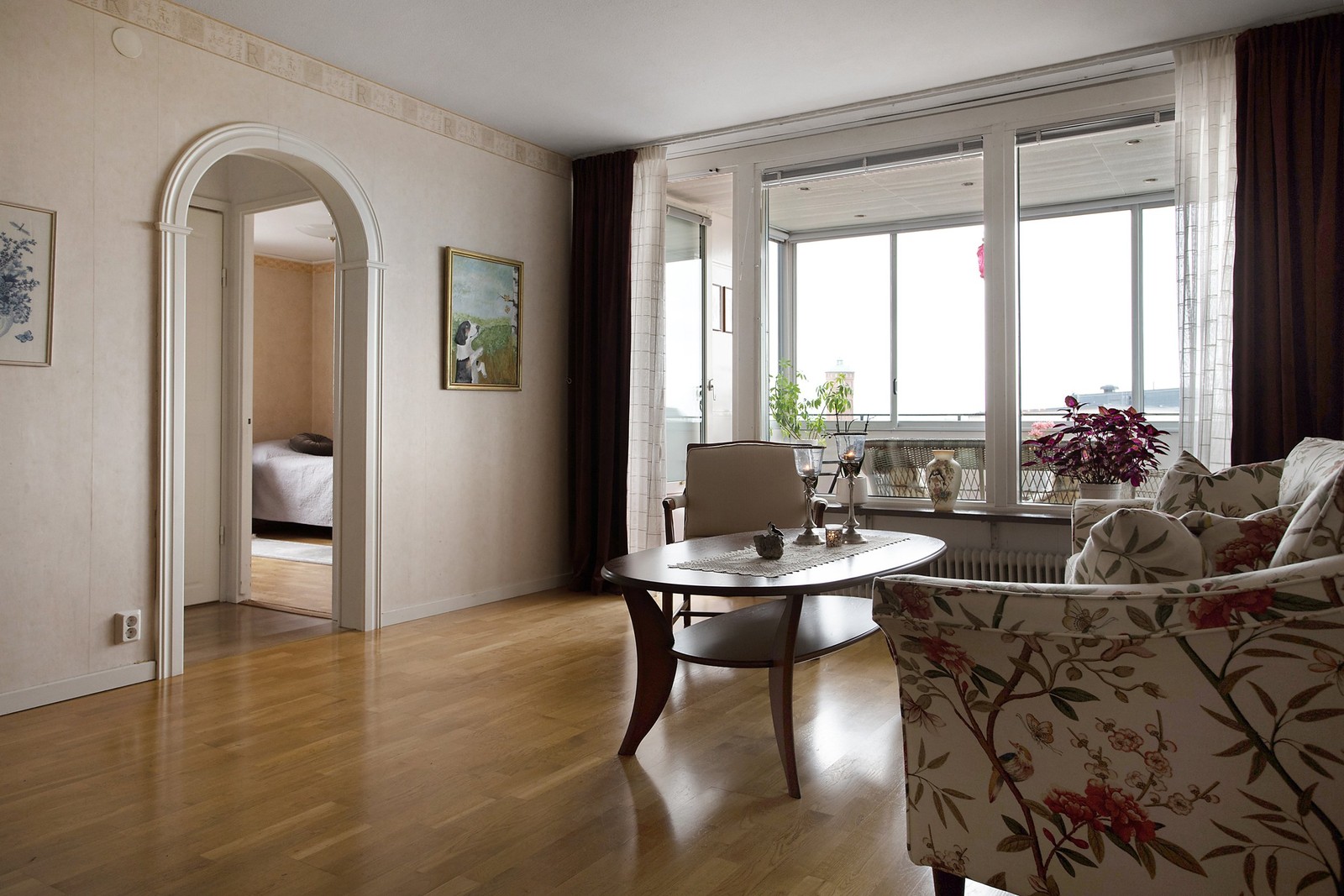 Ljusa och genomgående ytskikt med parkettgolv samsas här i en luftig interiör. Två stora sovrum, gott om förvaring och ett tredje rum som kan bli såväl matsal som ytterligare ett sovrum. Uppdaterat kök med tacksamma utrymmen och möjlighet till matplats. Helkaklat badrum och extra toalett med klinkergolv. Vardagsrummet har ett tilltalande ljusinsläpp och en stor inglasad balkong som fångar solen från tidig morgon. Till bostaden följer vinds- och matkällarförråd.
